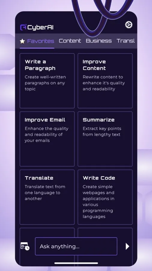 - Large number of task templates. Ask the artificial intelligence to write text, improve your email, write a song, or generate program code in any programming language