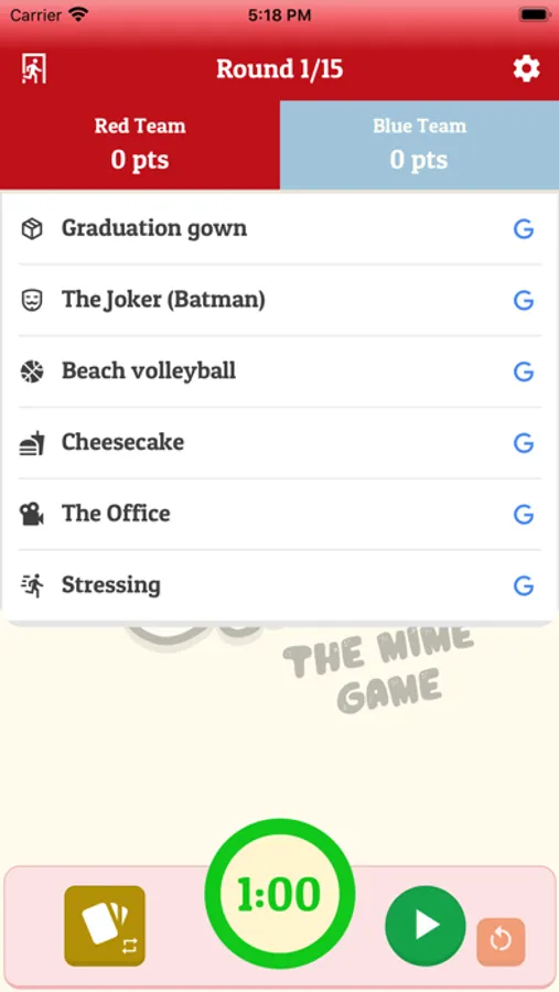 Gather your friends and start playing with more than 1.500 fun words to mime!