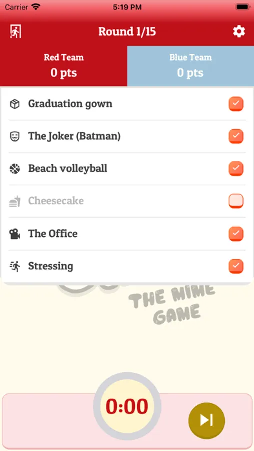 Assemble the teams and choose the categories of words you want to play. You can also set the time and amount of words for each move!