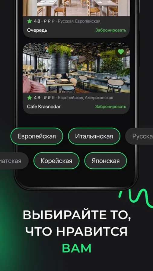 Формируйте свои предпочтения в приложении, добавляя заведения и блюда в избранное.