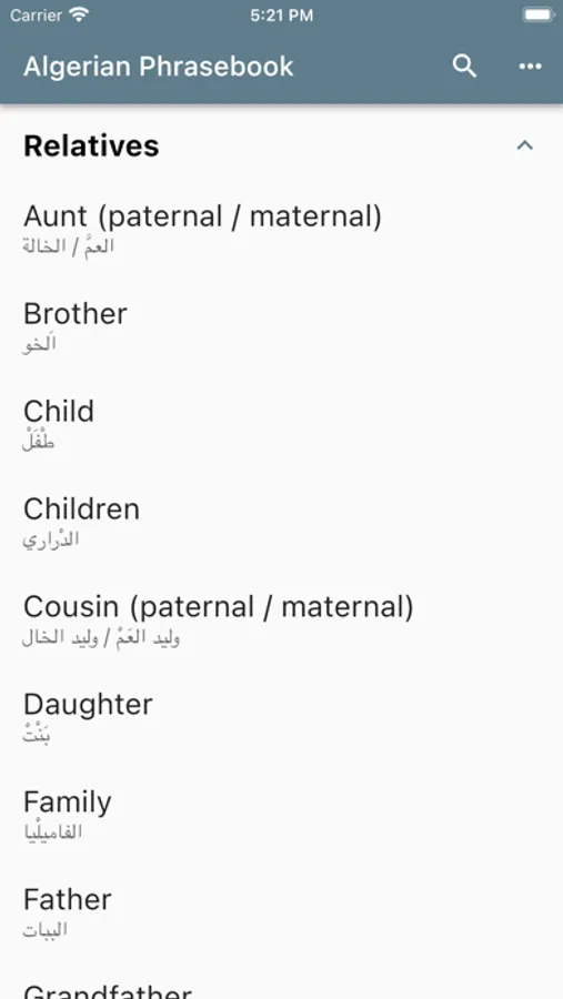 Using this app, you can select an English phrase and view its translation and how to pronounce it in Algerian.