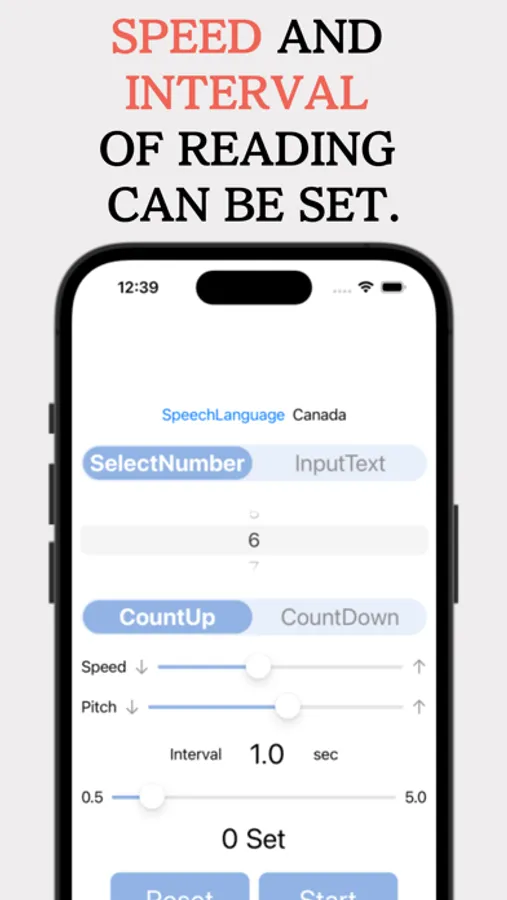 With this application, you can adjust the speed, interval, and tone of voice of the numbers to be read out. You can set the speed and tone to what you are comfortable listening to for a more pleasant experience.