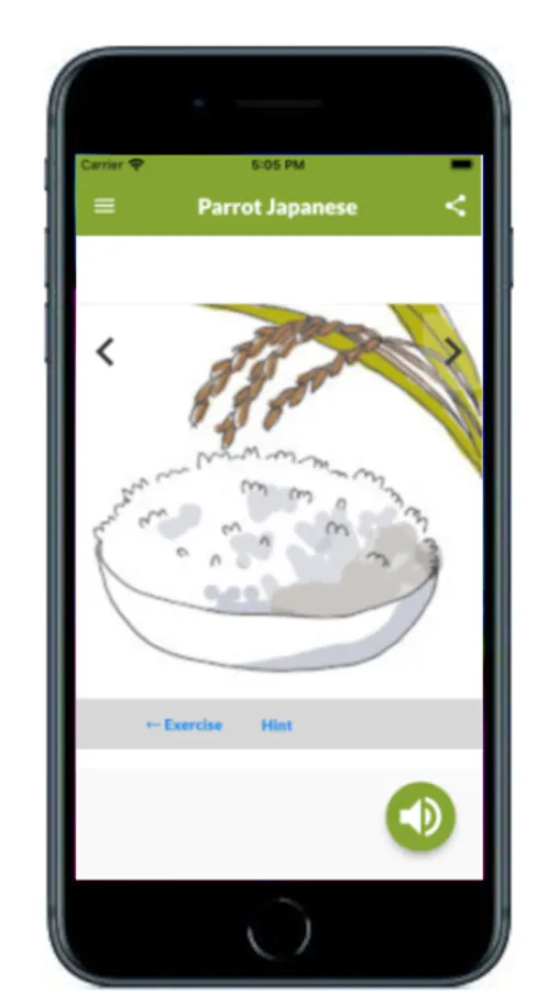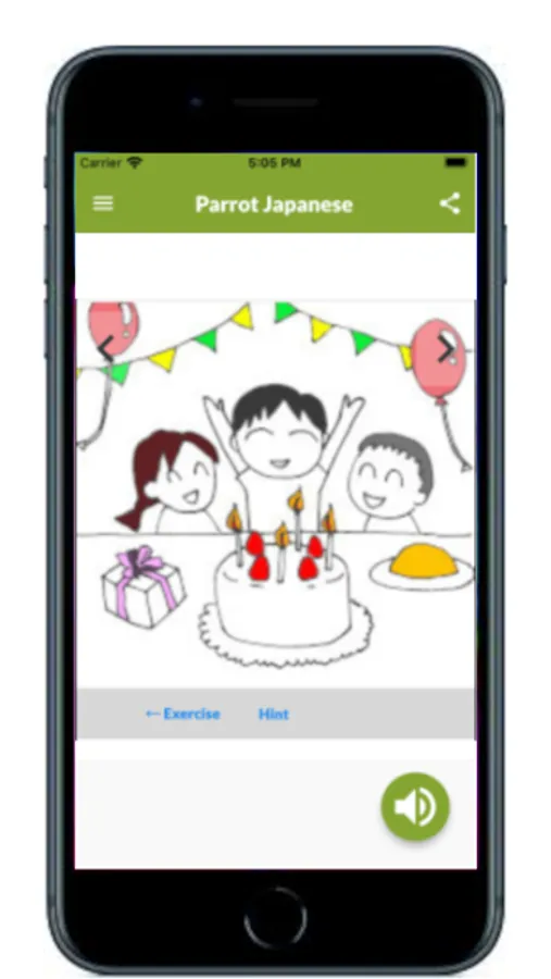 So, this application software Speak Japanese Like Parrot is designed by its specification in which you listen to the voice and pronounce after it, and the meaning is displayed after the pronunciation is applicable.