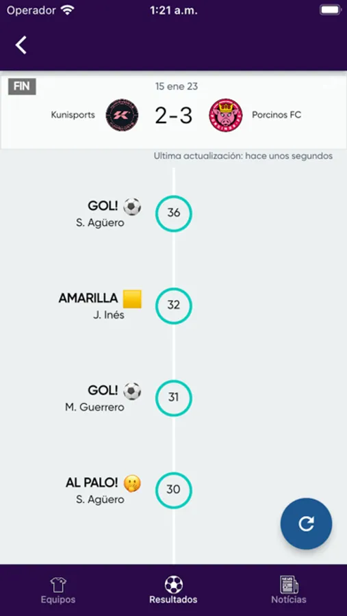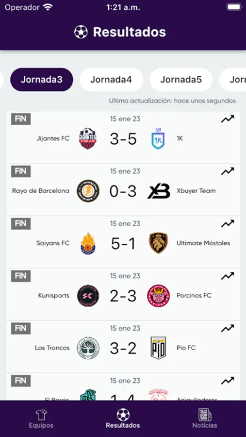 - Jornadas: Calendario deportivo de todas las jornadas, horarios y resultados en tiempo real