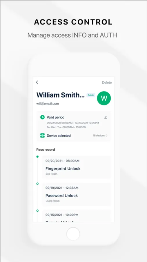 After the residents add access device (door lock), it can be authorized access permission, password, access period.