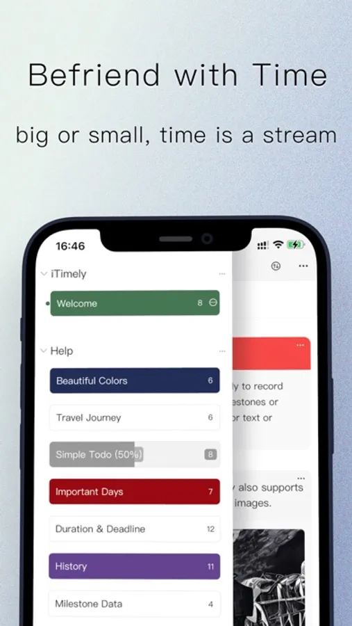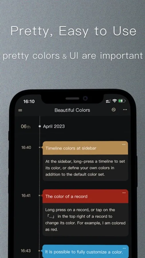 With a simple lifestyle and pretty timelines in iTimely, becomes a friend of time. An app that is used daily should have a beautiful interface and an easy-to-use experience, especially for recording life, it should be much more beautiful. In this way, we will have a little bit of joy in the process of using it.
