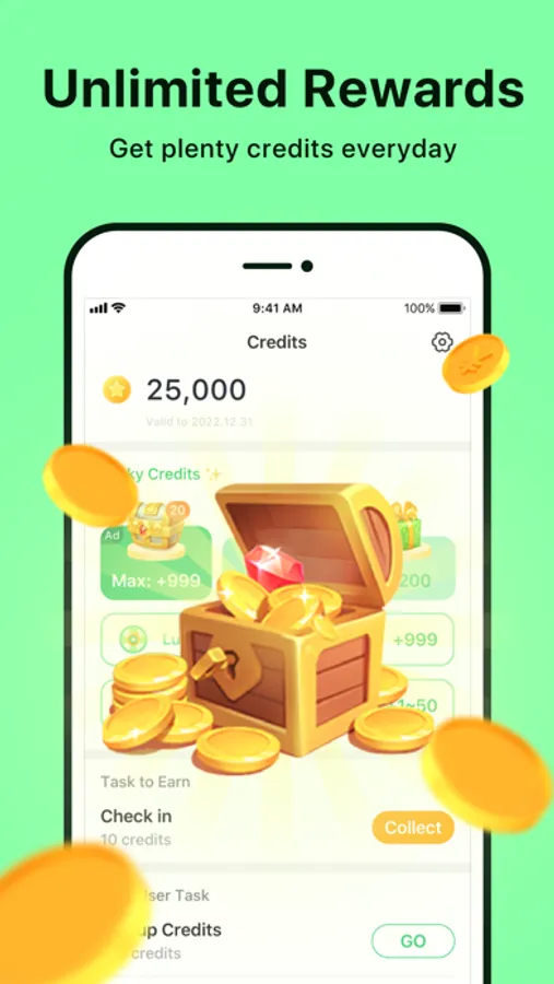 Watch videos to earn free credits. You have several options for earning credits, the simplest requires just one tap. Earn more credits by completing some fun tasks. It's totally free as you use it more. By the way, if you do not want to earn credit, you also can buy credit for calls.