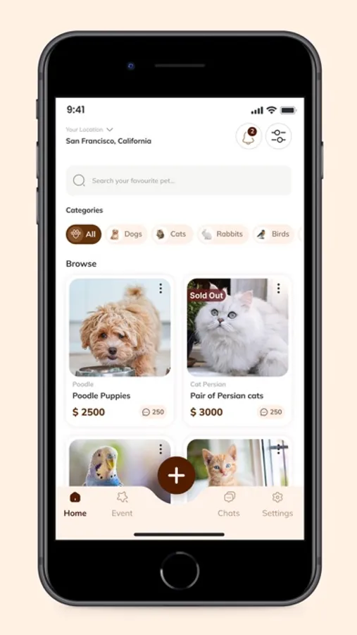 Spot Your Next Pets is the first app that allows you to buy or sell any animal. It's a pet lover's dream. Find your new pet on this app. If you're looking for a kitten,dog or horse this app has it for you to purchase or available to post for sale. The sellers are able to post animals for sale using 3 different options: a buy now option,bidding ,or payment plans.One of the many great benefits is when you make a purchase you are able to choose a shipping quote offered by us. We accept payment plans and pay in full. That's not all we offer on this app, check out the market place to buy or sell any related animal products. Last but not least we have a built in calendar so you can post any animal related events and you can search all events near your location.
