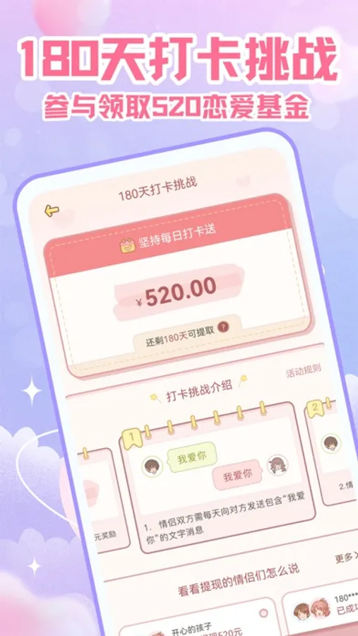 和Ta一起参与180天打卡,就可以获得520爱情基金哦: