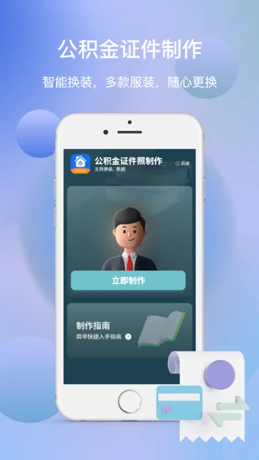 公积金证件照制作,拍照即可生成证件照,支持换装、美颜等功能!