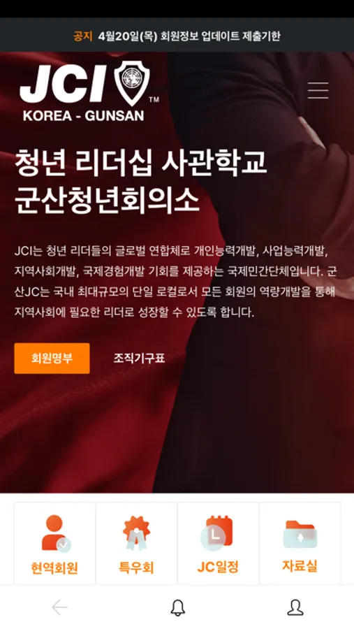 군산청년회의소 회원전용 어플입니다. 회원명 검색, 업종별 검색, 전화걸기, 문자보내기 등 기존 어플에서 사용하시던 기능을 그대로 웹 어플리케이션으로 더욱 가볍고 빠른 응답속도로 구현했습니다. [개발자: 정현석]