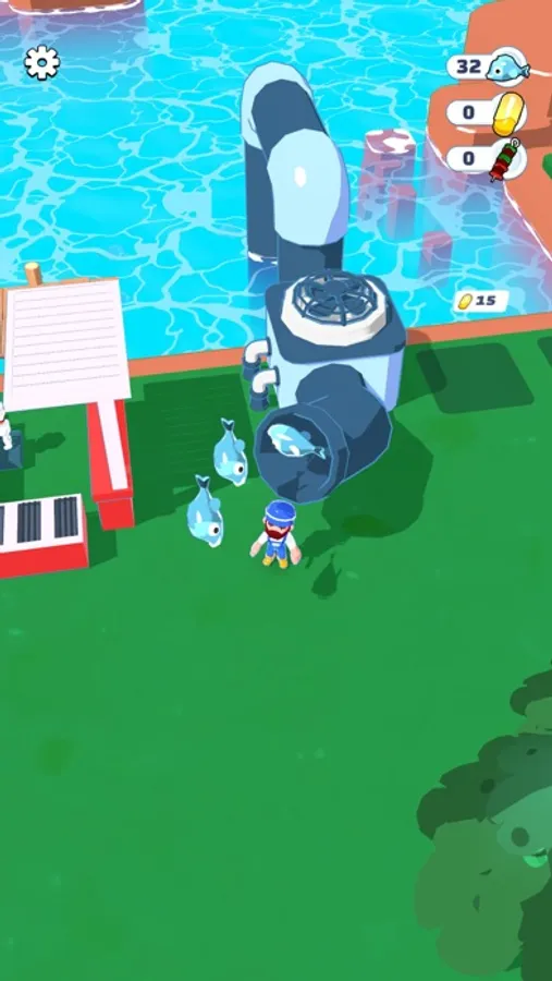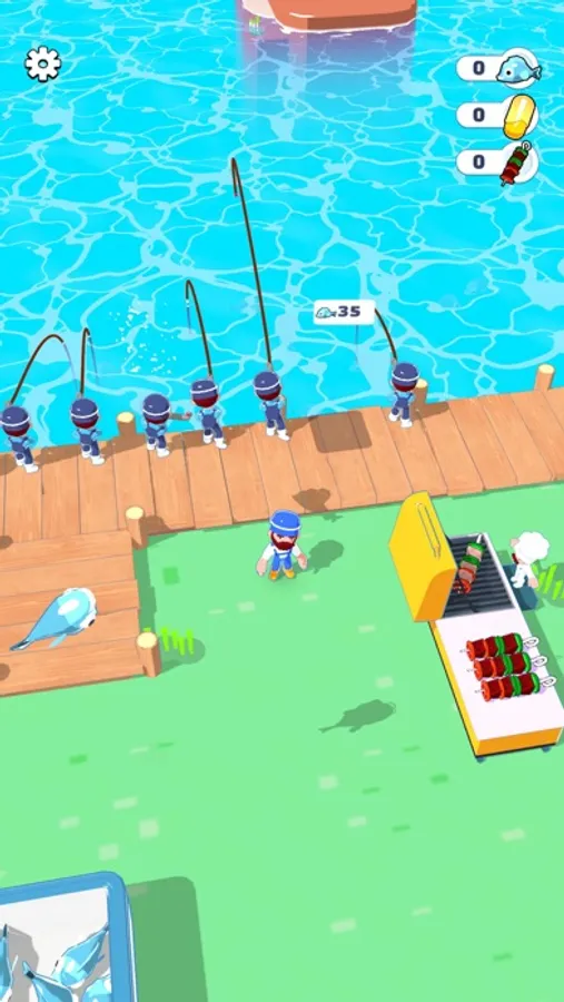 You'll start with a basic fishing setup, you get fishes and you can use them to buy new fishers and other upgrades that will help you get even more fish!