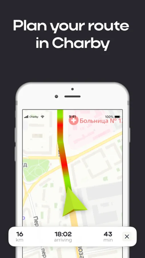 2. Plot a route to the station. The app selects the shortest route to the charge point, taking into account traffic jams. You can follow the route without using other apps.