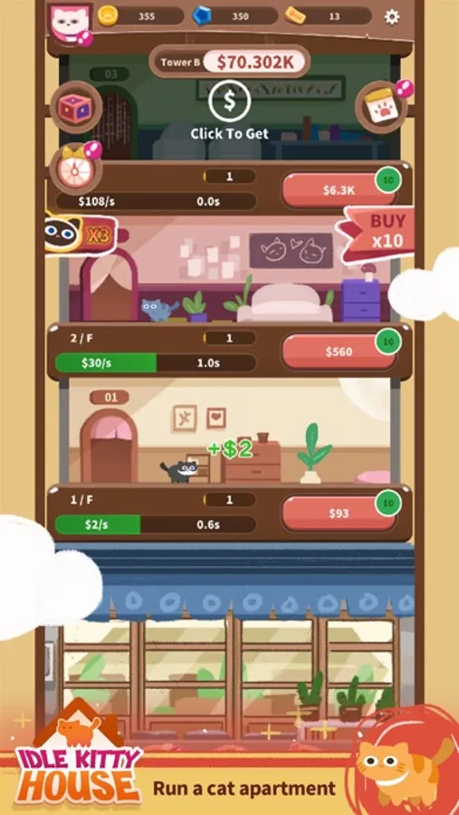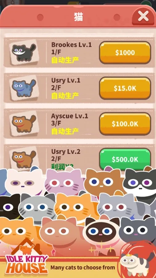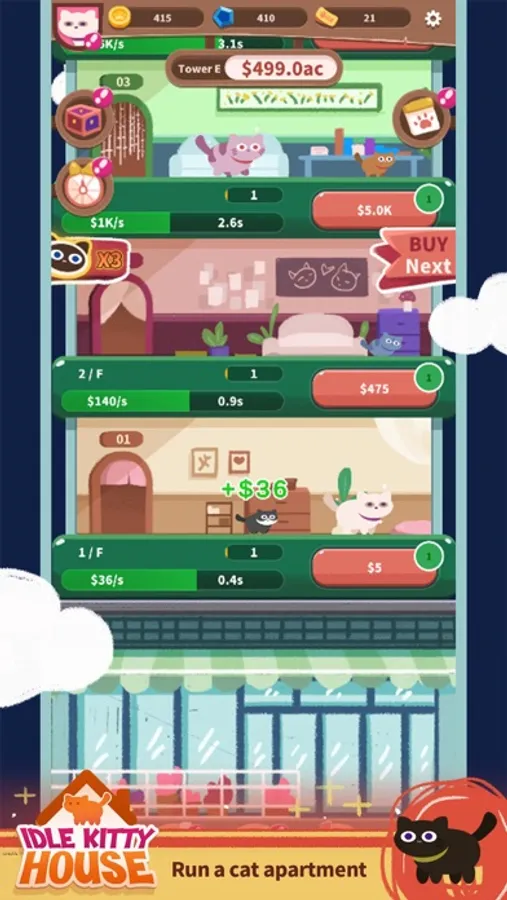 Idle kitty house is a cute and interesting development game. Become the owner of the cat in the cat world. The owner can unlock and build his own cat world in the game. Continuously upgrading the cat's floor can increase the income. The higher the level, the faster the income. Faster, ask the cat housekeeper to turn on the automatic production mode, which is faster and more convenient without the owner's operation. Each cat can be clicked to interact, and cats of different forms will have different reactions when interacting with their owners. Build the most powerful cat world together with your little friends!