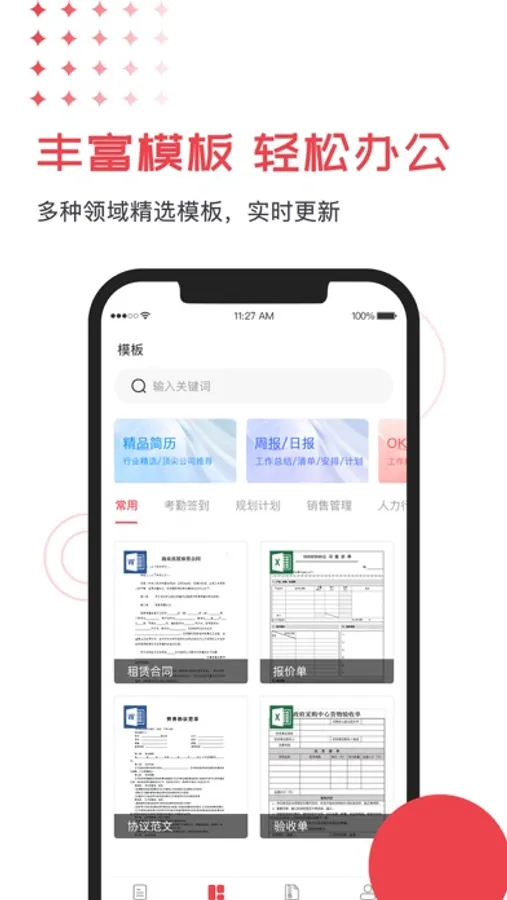 做文档没有头绪?不知道用什么格式?不知道怎么设定条件?文档模板可以满足您。产品内提供了大量的常用模板,可一键新建套用,在模板的基础上根据实际情况酌情修改,大大提高工作效率,是你早点下班满分工作的利器。