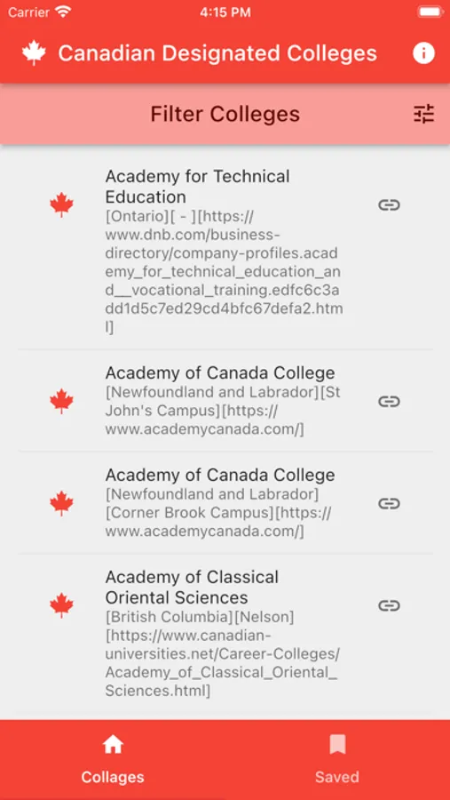 This app allows users to view a list of designated Canadian Colleges along with websites that can be bookmarked from within the app.