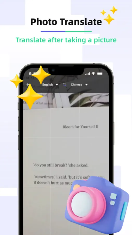 Directly take photos of pictures with text or import pictures from the album. Today Translate will recognize the text on the picture and complete the translation.