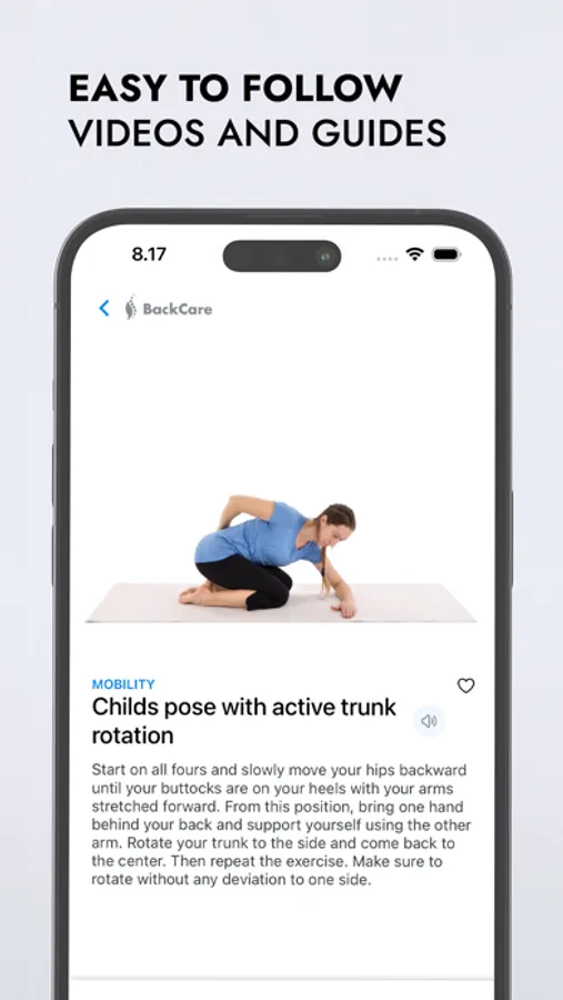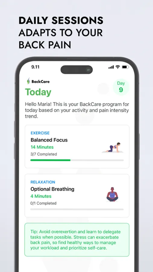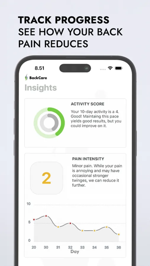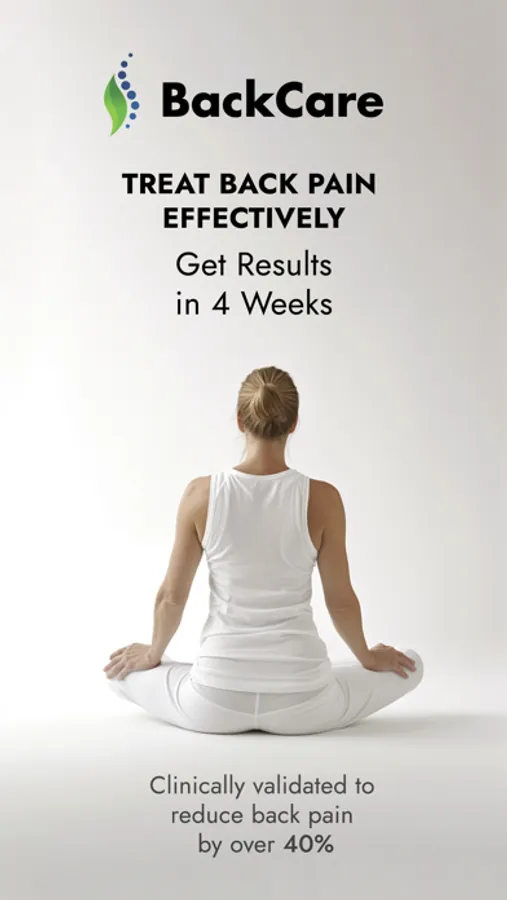 Download BackCare and access the clinically validated program for back pain care for FREE. See how it adapts to your back pain and discover how 15 minutes daily can change your life for the better.