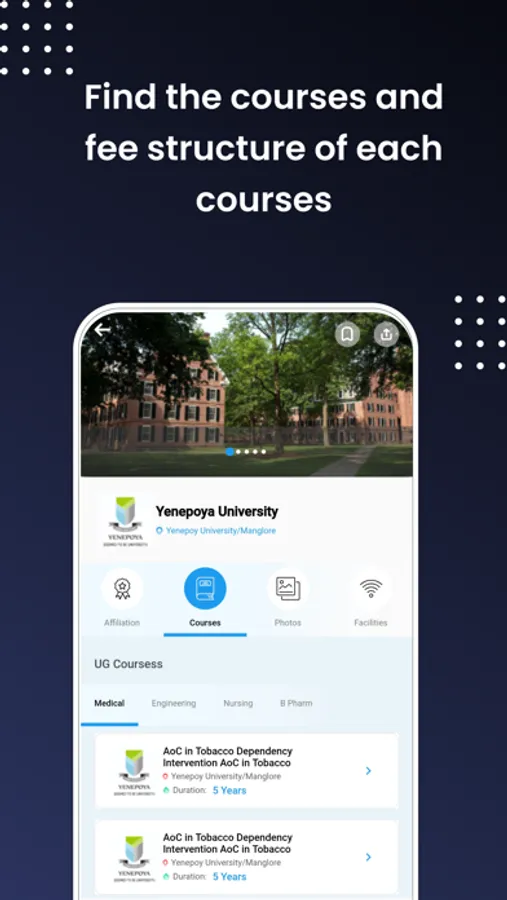 Our app offers you the convenience of booking seats and paying fees online. You can select a college and course of your choice and make a booking by paying a nominal fee. Once you have booked a seat, you can pay the college fees online, eliminating the need for physical visits to the college or university. This saves you time and money, making the admission process hassle-free.