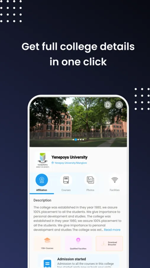 Our app provides entire details of all colleges and universities, giving you an insight into the quality of education and facilities provided. This helps you make an informed decision about the college you want to attend.