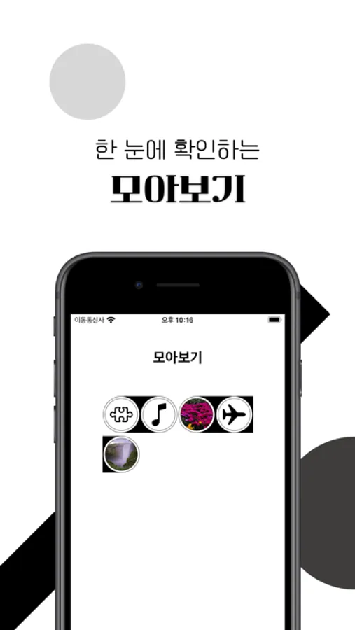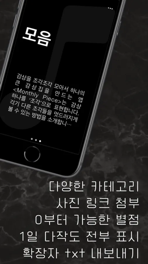 '모아보기'는 지금까지 작성한 조각들을 적당히 뭉쳐 보여줍니다. 음, 아니지. 적당히 뭉치면 안 예쁜 것 같아 예쁘게 뭉쳐드렸습니다. 하루에 다작하는 이들에게 최대의 기쁨이겠죠? 당신의 사진을 망가뜨리지 않고 모두 보여드립니다. 제가 이 앱을 만든 가장 큰 이유기도 합니다.