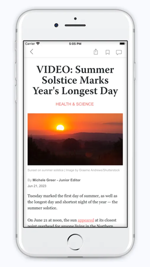 Quickly and easily share your favorite stories on Facebook, Twitter, Instagram, Messages, and email