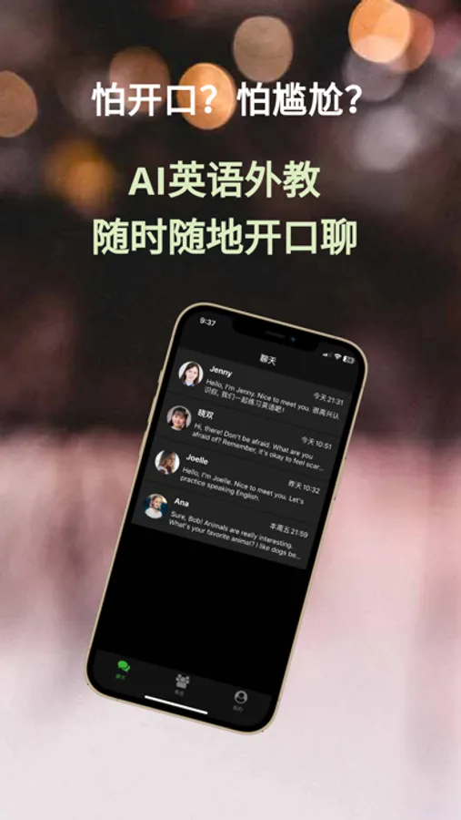1. 文字和语音聊天:用户可以随时和外教老师通过文字或语音聊天,聊爱好、聊生活、问问题,自由发挥,想说就说;