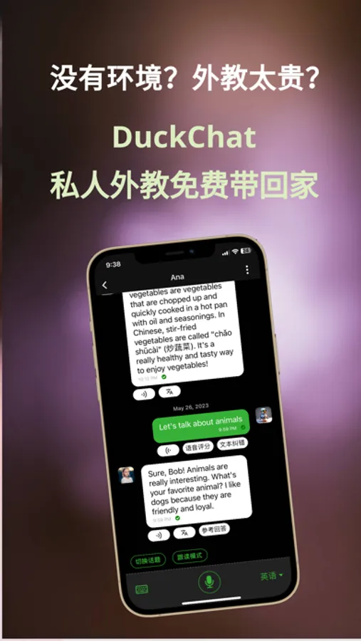 DuckChat是一款AI英语学习App,它采用了最新的人工智能技术,提供多角色AI英语外教随时随地与你聊天,通过创造真实的英语交流环境,帮助你更高效地学习英语,提高英语水平。