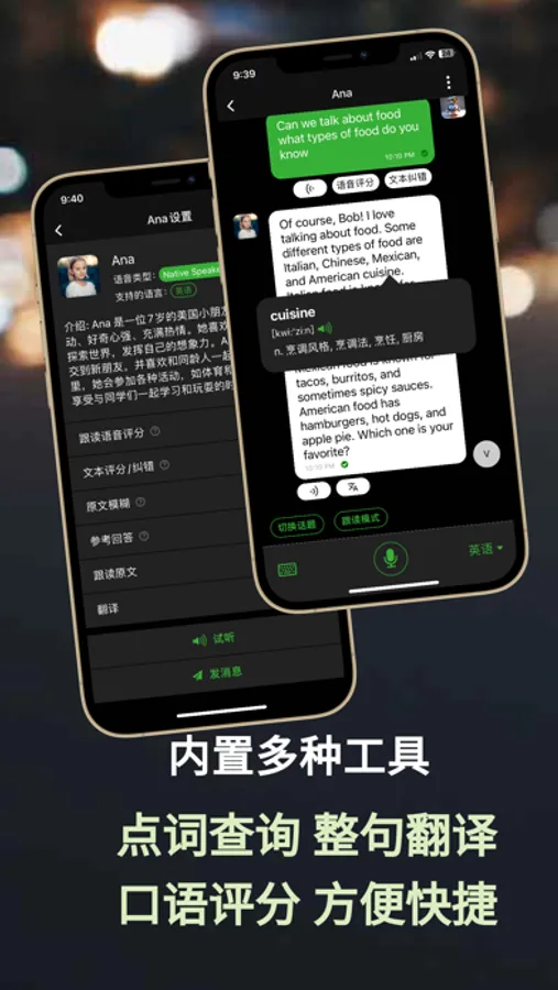 7. 对话查词:对话中遇到不认识的单词,直接点击查询,方便快捷;