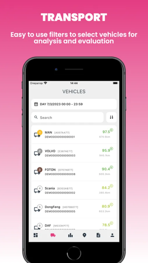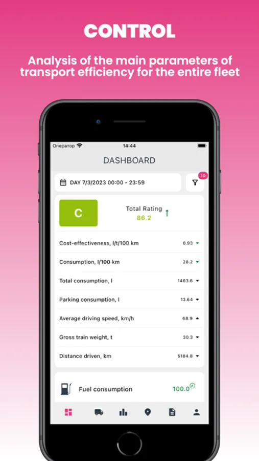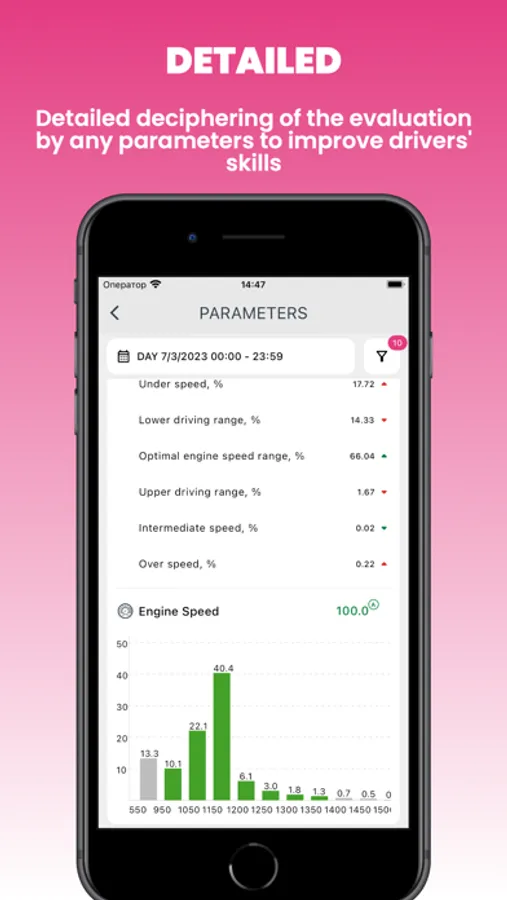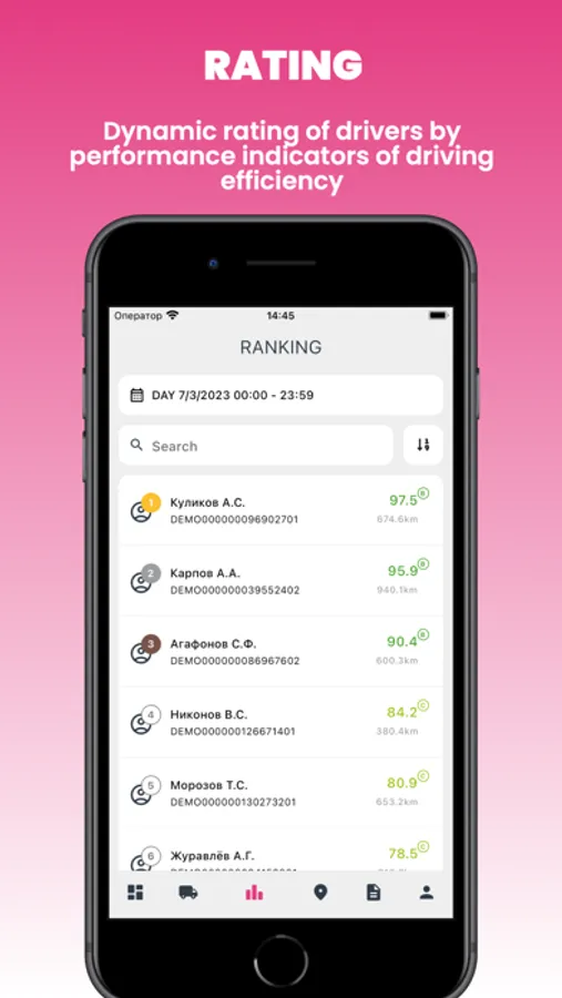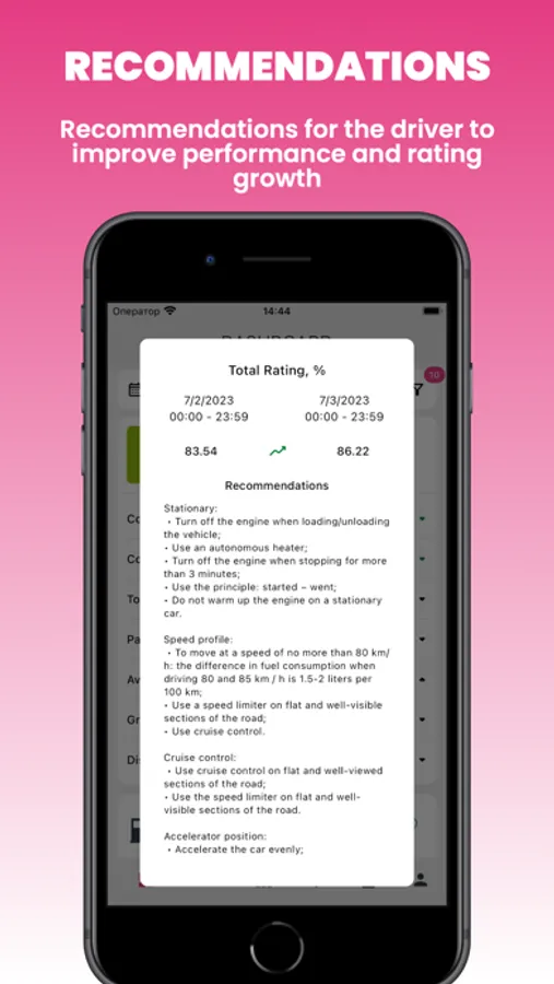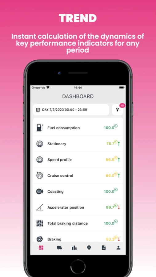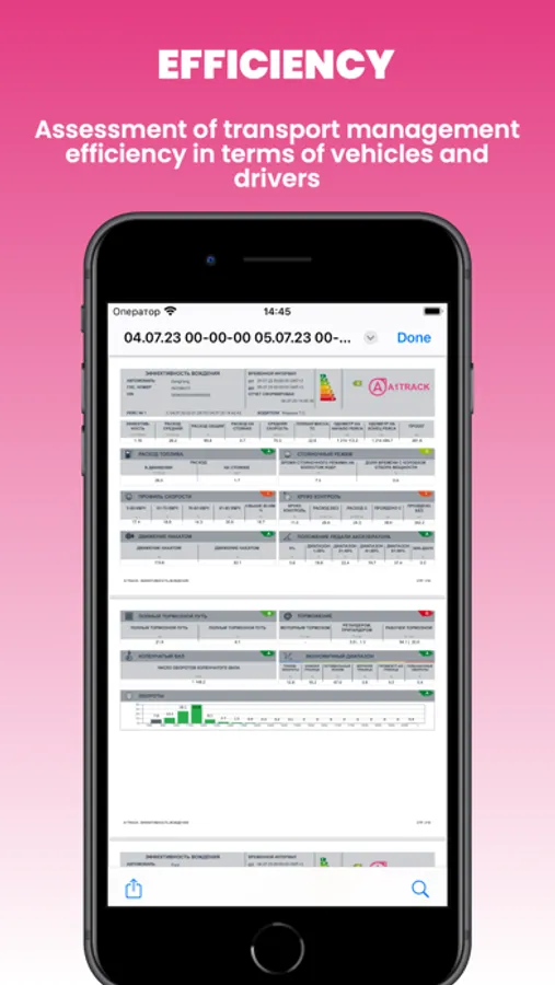 - view your own indicators in the driving efficiency assessment system at any time for any period, including when driving several vehicles