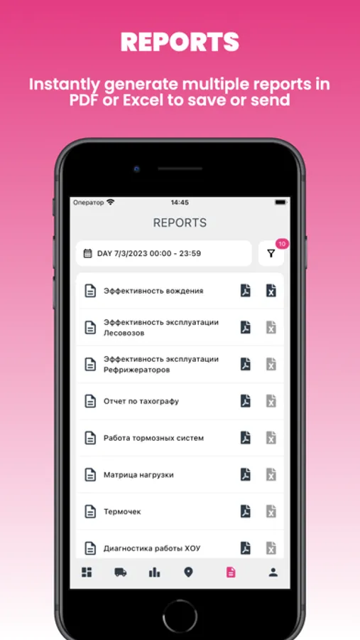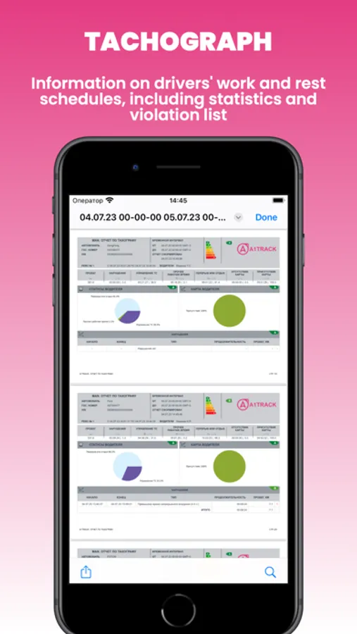 - the ability to build, upload and send formalized reports from the system for various tasks - the overall and personal driving efficiency, the mode of work and rest of drivers, the state of the fleet of refrigeration equipment and many others