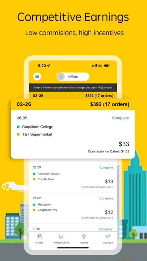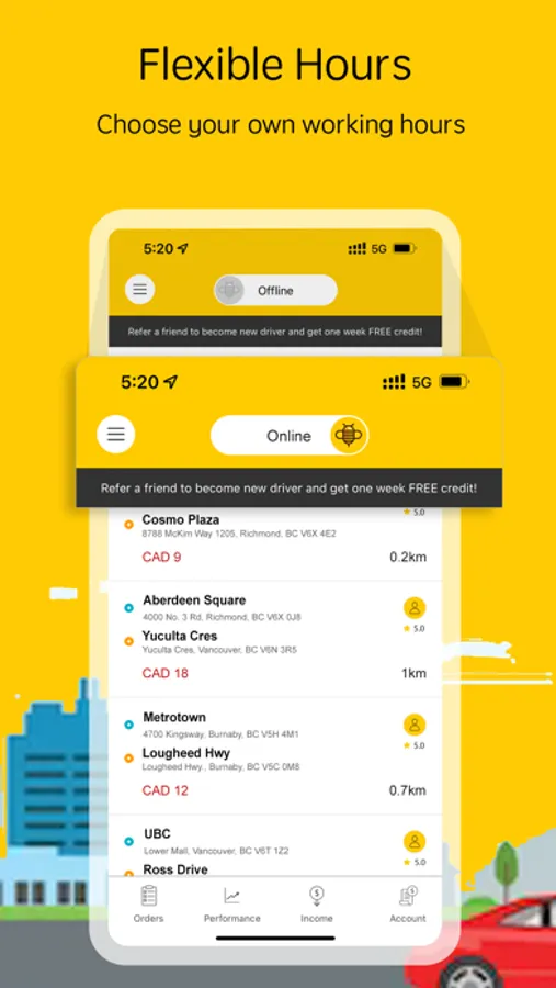 As a driver on our ride hailing app, you can earn a competitive income by low commission and extra bonuses and incentives for exceptional service.