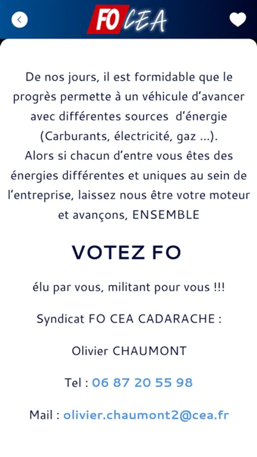 L'application FO CEA est disponible en téléchargement gratuit. N'attendez plus, installez-la dès maintenant et restez connectés avec le syndicat FO CEA en toute simplicité !