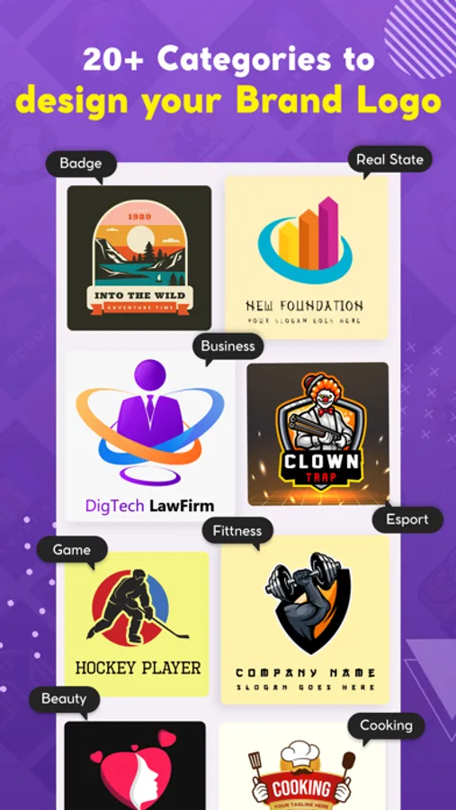 Custom logo maker creative designer helps in designing different categories of logo design. Logo maker and logo creator app design your business card logos, brand logo and text logo design with versatile ideas of logo designs.