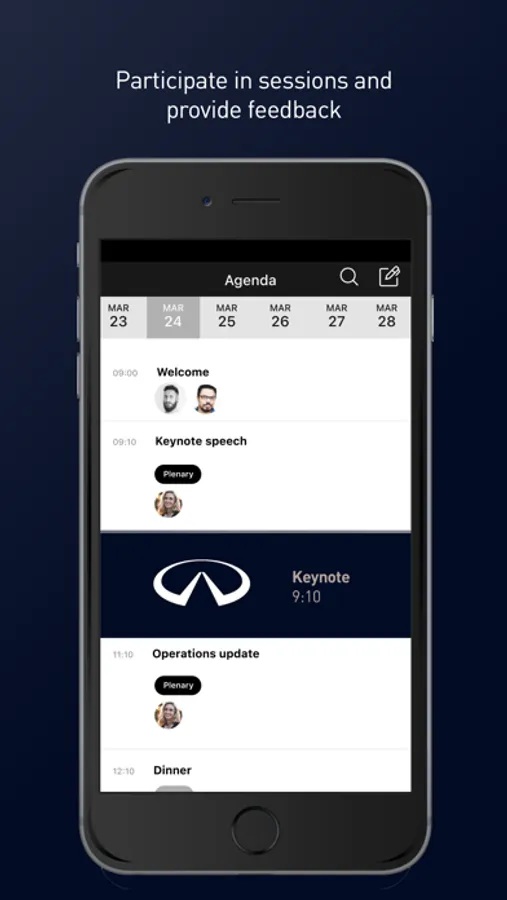 INFINITI Meetings & Events is the official brand mobile app allowing you to view program-related information, agendas, and more for your event. After you download this app, refer to your announcement email for instructions on accessing your meeting or event.