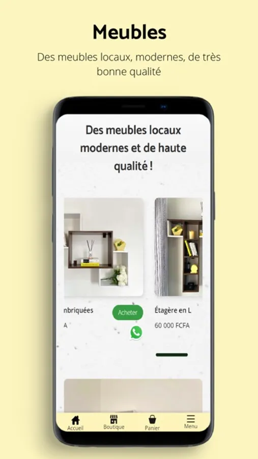 Bienvenue dans notre boutique en ligne, où nous proposons une large gamme de produits haut de gamme pour améliorer votre intérieur et votre garde-robe. De nos meubles modernes à nos tableaux variés et papiers peints, en passant par nos habits et chaussures de mode, nous avons tout ce qu'il vous faut pour vous sentir chez vous et bien habillé. Nos produits sont soigneusement sélectionnés pour leur qualité supérieure, leur design raffiné et leur durabilité, afin que vous puissiez profiter de vos achats pendant de nombreuses années. Nous sommes fiers de travailler avec des artisans locaux pour proposer des produits uniques et soutenir le commerce éthique. Commandez dès maintenant et bénéficiez d'une livraison rapide et d'un service client exceptionnel.