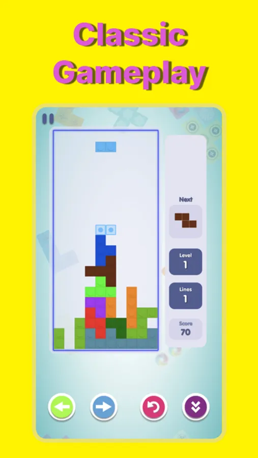 The game has tons of levels that challenge players to think strategically and use their logical skills to complete lines by moving differently shaped pieces (tetrominoes), which descend onto the playing field. The completed lines disappear and grant the player points, and the player can proceed to fill the vacated spaces. The game ends when the uncleared lines reach the top of the playing field. The longer the player can delay this outcome, the higher their score will be.