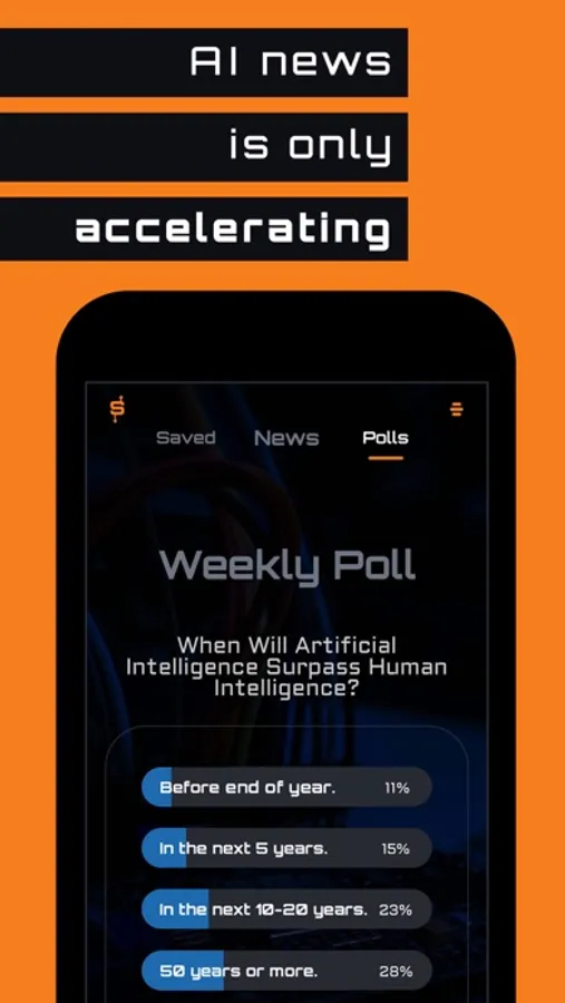 Join the fun and engaging experience with our ever-evolving prediction polls. By expressing your views, you can help shape the trajectory of our future and drive AI narratives. With each vote, you'll uncover captivating forecasts and be part of the exciting narrative as we navigate the world of tomorrow together.