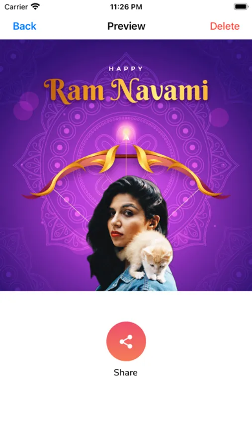 Using AI Festival Photo Editor app will remove you background from photo and gives you clear and transparent photo above the selected festival post.