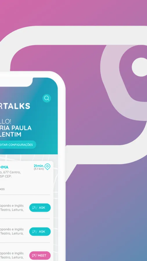 Pertalks, o aplicativo desenvolvido para reunir pessoas em interações sociais significativas e presenciais, baseadas em interesses compartilhados, conhecimento e desejo de conexão por meio de conversas envolventes.