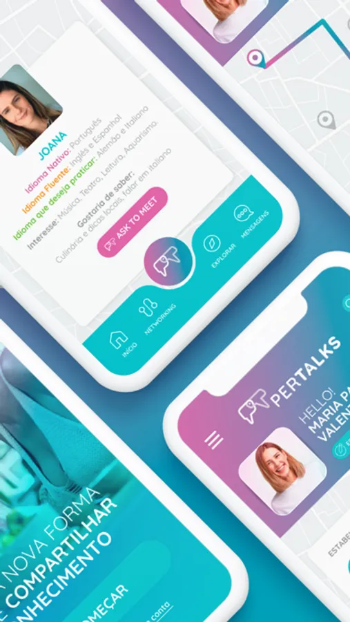 Pertalks é um aplicativo de interação social que conecta pessoas, presencialmente, que queiram compartilhar seus conhecimentos e interesses ou, simplesmente, praticar ou conversar em outra língua.