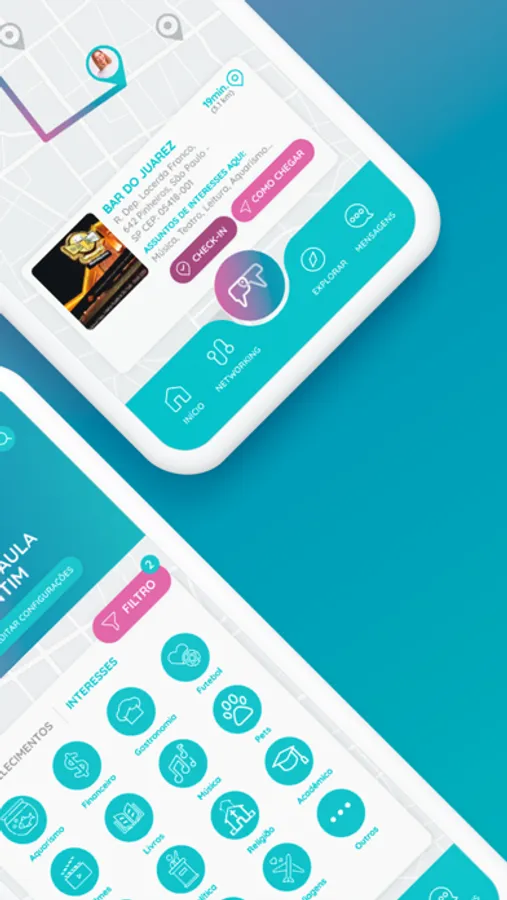Tudo isso no local atual, seja em um bar, restaurante, evento, hotel, ou em qualquer lugar que vocês fizer um check-in pelo aplicativo.