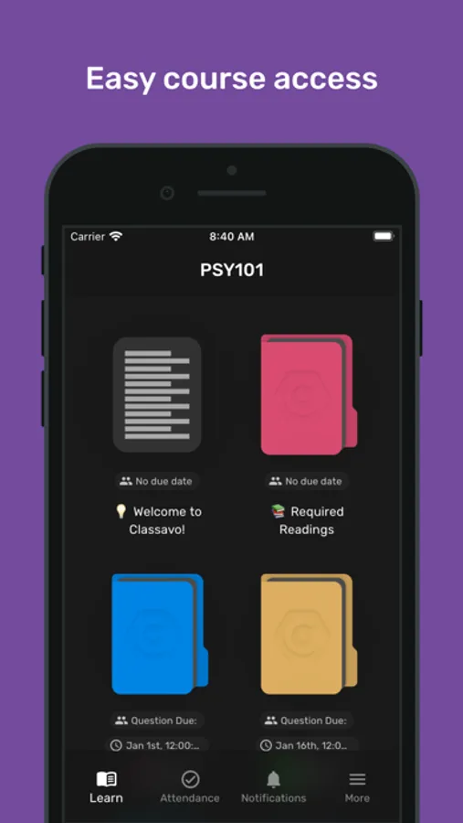 We make it easy to interact and communicate with your classmates! Through polls and discussion forums, you're able to communicate about your class, assignments, projects, and even study together virtually for upcoming exams!