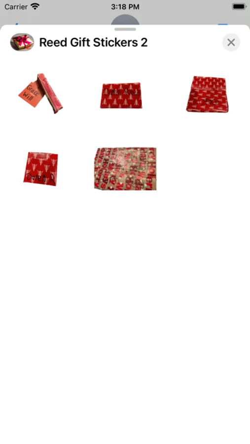 The sticker app for iMessage contains gift stickers based on the Reed family (Grace/Daren)'s Christmas and Birthdays.