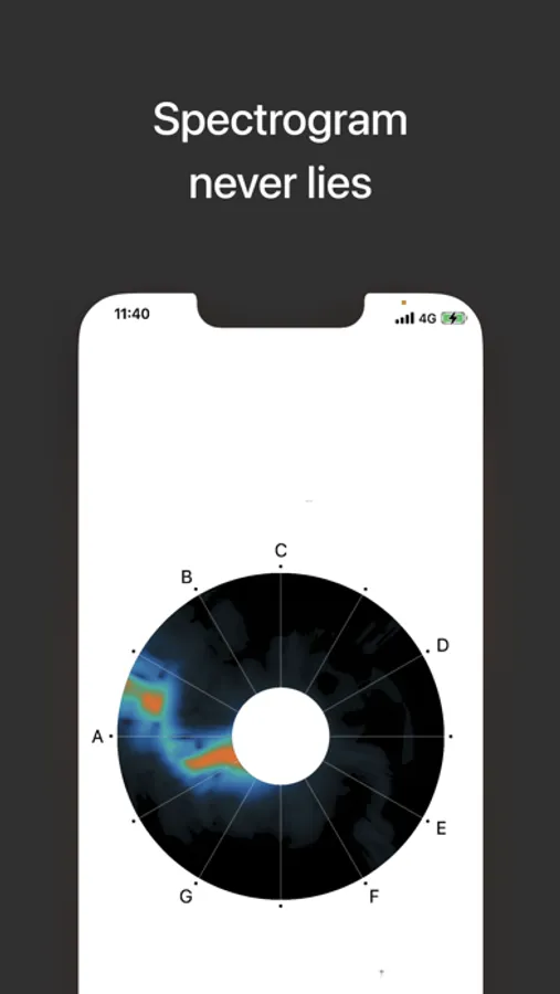 This app shows real spectrum that is plotted into octave circle, meaning you can really *see* a note being played.