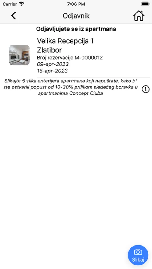 Prilikom odjave gosta iz nekretnine koju koristi, gost ima mogućnost, da vlasniku nekretnine pošalje slike nekretnine koju napušta, kroz funkciju odjavnik. Na ovaj način vlasnici imaju uvid u stanje apartmana nakon izlaska gosta.