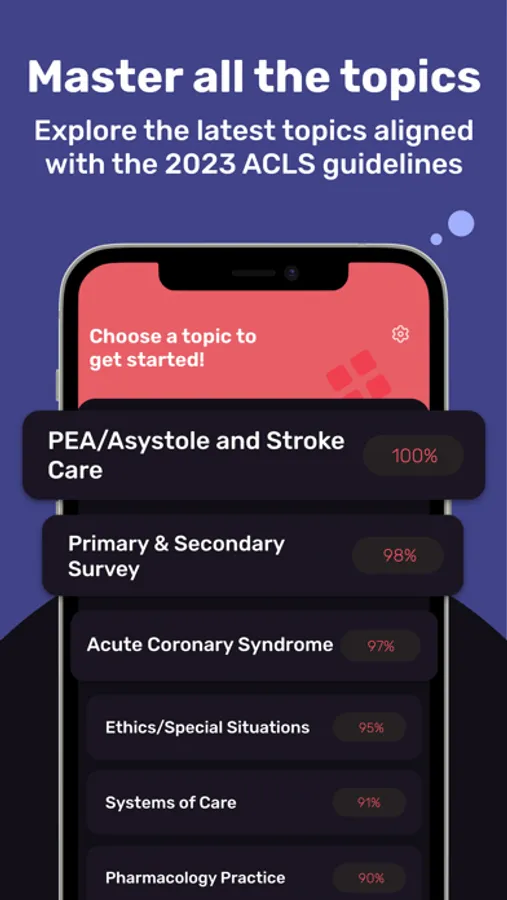 Our goal is to give you all the information you need to pass the ACLS exam. All in one app. This study app directly aligns with the ACLS exam blueprint, giving you the preparation you need to achieve the highest score possible.