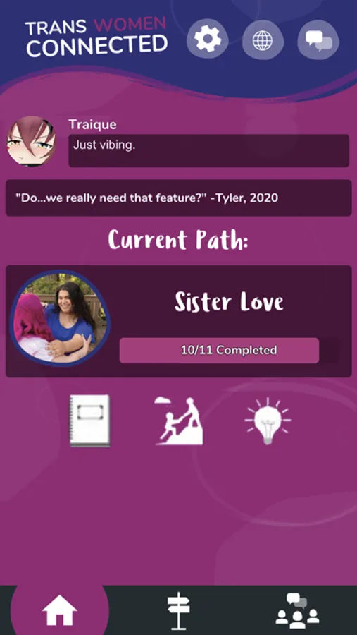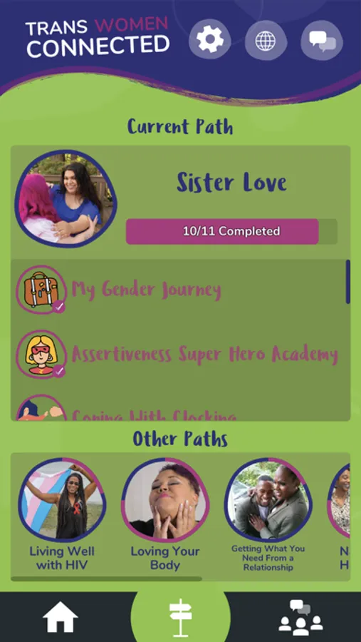 Learn to walk your own path as a trans woman. Complete educational and health activities, chat in the forums, and explore our trans resources.