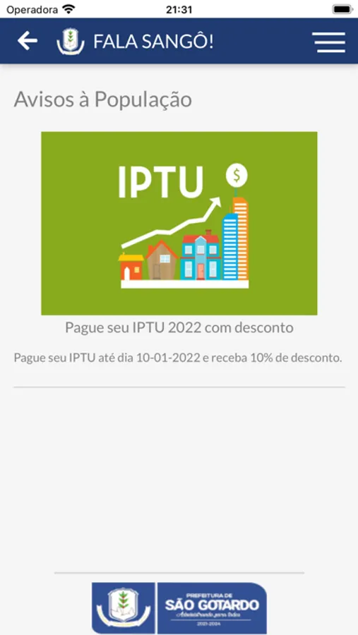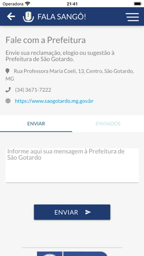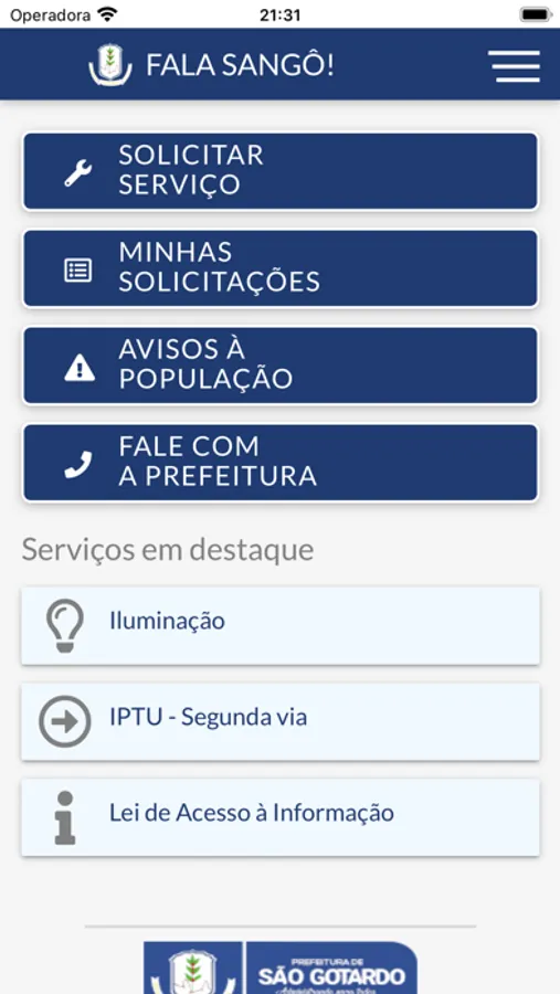 Aplicativo da Prefeitura Municipal de São Gotardo-MG, que permite a solicitação de serviços públicos pelos cidadãos, bem como o acompanhamento de suas solicitações e manifestações, sendo um canal de comunicação aberto da Administração Pública Municipal com a população, possibilitando ainda uma maior agilidade no atendimento de demandas diversas originadas por qualquer morador da cidade.