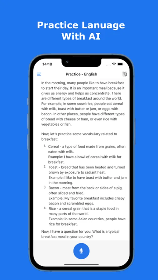 2. Voice Input & Feedback: Break the barriers of communication! Speak, get instant feedback, and refine your pronunciation. With our state-of-the-art voice recognition, you can converse as if with a native speaker.